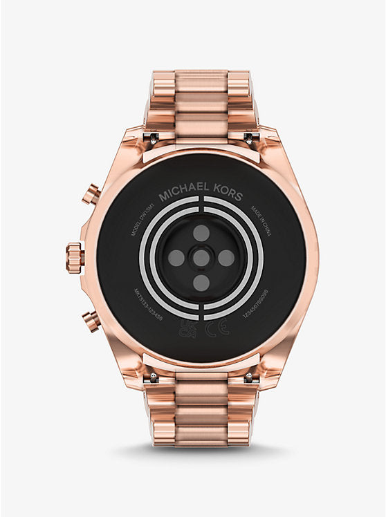 Operating System: Powered with Wear OS by Google Compatibility: Michael Kors Access works with phones running the latest version of Android™ (excluding Go edition and phones without Google Play Store) or iOS. Supported features may vary between platforms and countries with compatibility subject to change. Processor: Qualcomm® Snapdragon™ Wear 4100+ Memory: 1 GB RAM, 8GB Storage Display: 3.2 cm Color AMOLED / 416 x 416 / 326ppi Input: 2 Additional Push Buttons (configurable), Rotating Home Button, Touchscreen, Voice Sound/Actuator: Loudspeaker, Microphone, Vibration Connectivity: Bluetooth 5.0 LE, GPS, NFC SE, WiFi Sensors: Accelerometer, Altimeter, Ambient Light, Compass, Gyroscope, Off-body IR, PPG Heart Rate, SPO2 Battery: 24 Hr + multi day Extended Mode **Varies based on usage and after updates install**. USB data cable with magnetic dock snaps to split rings on watch caseback and spins 360 degrees for ease of use. Approximately half an hour to reach 80%. Case Water Resistance: 3 ATM