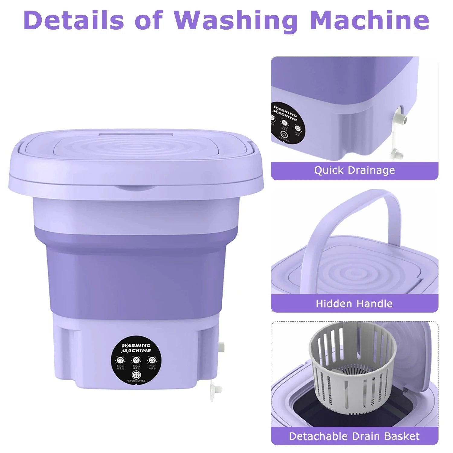 Portable Washing Machine, 6.5L Large Foldable Capacity Mini Washer of Underwear, Socks, Small Clothes Deep Cleaning for Dormitories, Hotel, Travel, Apartment Wash Machine