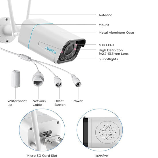 Reolink rlc 511wa 5mp wired and wifi camera with colour night vision two way audio 5× optial zoom box pack with complete accessories