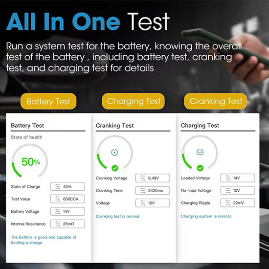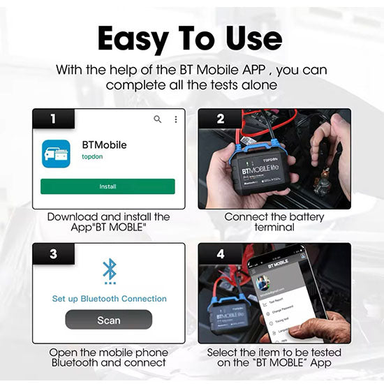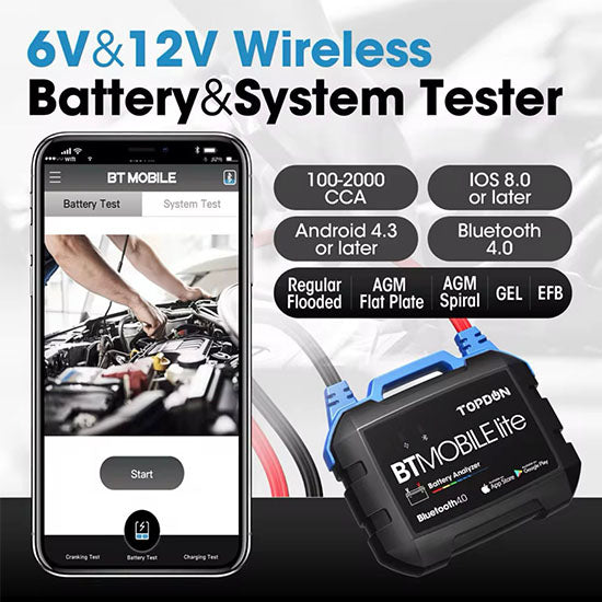 TOPDON BTMobile Lite Bluetooth Car Battery Tester 12V Wireless Cranking Charger Circut Tester Auto Analyzer Vehicle 100-2000CCA