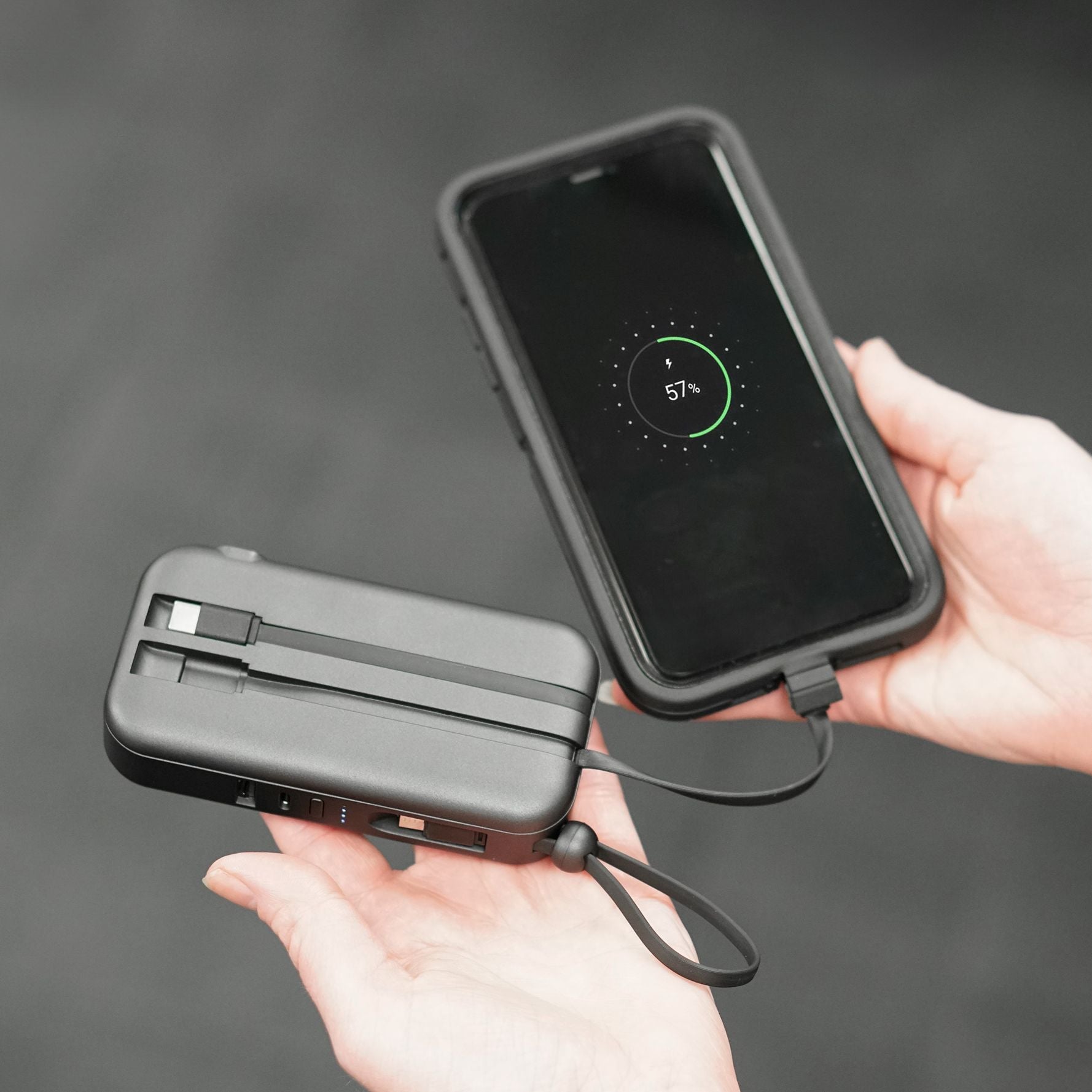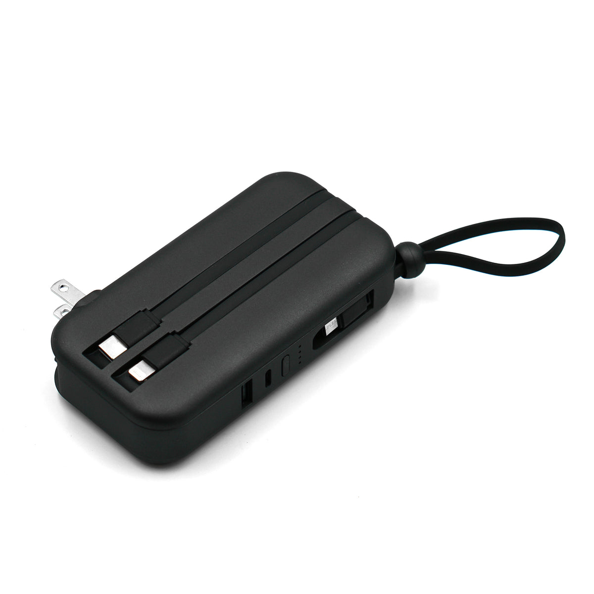 Ultimate Mini 10,000mAh Portable Power Bank with Built-In Cables & Retractable AC Plug